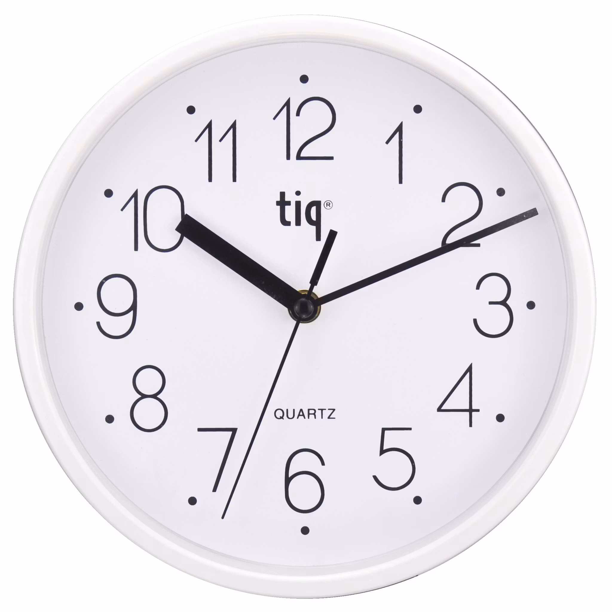 Tiq väggklocka med ram i plast, 22,5 cm - W99157 149 kr I lager. Lägg i korgen Produktbeskrivning Recensioner Tiq VäggurVit ram i plast med vit urtavlaGlaslins225 mm i diameterBygger 40 mm från väggSvepande, tystgående visareBatteri 1*AA (ingår ej)Art. nummer: W99157